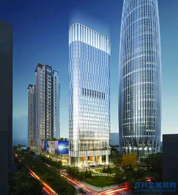 該工程位于深圳南山區后海中心區,作為華潤萬家總部辦公大樓,建筑高度為144.6米,地下4層,地上28層,塔樓建筑面積50020平方米。華潤萬家大廈外框由14根勁性鋼柱組成,塔樓各樓層截面為等邊三角形,設計采用獨特的側邊核心筒結構,由核心筒構成三角形的一邊,其余兩邊各由7根勁性鋼柱組成。該項目將與相鄰的華潤集團總部大廈“春筍”共同構成華潤深圳灣國際商業中心項目的主要組成部分。