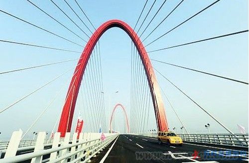 1月18日,杭州市之江大橋(又稱錢江七橋)正式通車,該橋?yàn)楹夹戮案咚俟返难由炀€項(xiàng)目,連接杭州市濱江和之江兩個(gè)區(qū)塊。 之江大橋全長4.7公里,為空間雙索面拱形鋼塔斜拉橋,塔高90.5米,主橋?qū)?0.5米,被譽(yù)為“錢塘之門”,是目前國內(nèi)同類橋梁中跨度最大、塔高最高、橋面最寬的大橋。