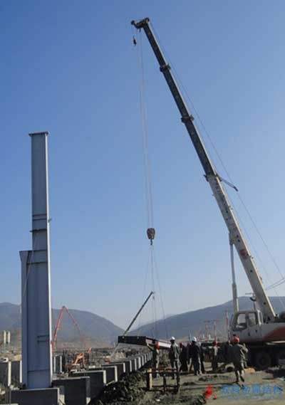 1月10日上午10點,隨著第一根構件平穩精確地落樁,標志著云南建工鋼構公司新年第一個工程順利開工。該公司黨委副書記陸朝富出席開工儀式。 云南云鋁瀝鑫鋁業有限公司年產15萬噸交通用鋁型材項目土建工程Ⅰ標段,位于麗江市金山鄉文化村附近,工程內容包括:生產主車間A-B跨、槽大修車間、10KV配電室、三個通廊等工程的土建、鋼結構的制作安裝。主要為A—B跨生產主車間為單跨雙層廠房,跨度為27米。車間長約1069米,柱間距6.6米。焊接鋼結構是以板材為主的制作構件,型鋼鋼結構是以熱軋型鋼為主的制作構件。屋脊標高17.725米。鋼柱采用焊接工字型實腹式截面柱。屋面梁采用焊接工字型實腹式變截面梁。計劃工期為236日歷天。 第二天上午,陸朝富還深入到公司在建項目大理鶴慶藥師佛工程,看望慰問項目職工。