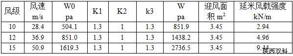 根據《蘭新鐵路新疆有限公司文件》(新鐵安質2010 33號)提供的風級鳳速換算表(見表1)及《鐵路橋涵設計基本規范》中的4.4.1條確定風荷載的大小。